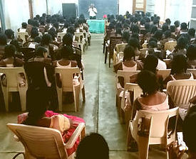 Dr Arulappa Girls Higher Secondary School girls in Neerpeir village are listening to Thenmozhi briefing them about opportunities in Sarva Vidya through the 'Empower to Enable' programmes. As a routine all the briefings are done directly and no advertisements are resorted to.